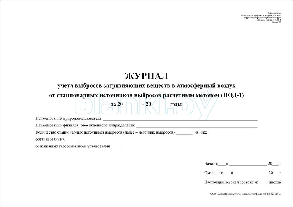 - журнал ПОД-1 для учета выбросов загрязняющих веществ в атмосферный воздух расчетным методом;