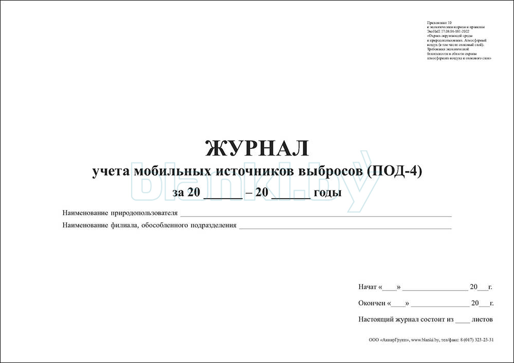 - журнал ПОД-4 для юридических лиц, имеющих на своем балансе согласно бухгалтерской документации 25 и более мобильных источников выбросов;