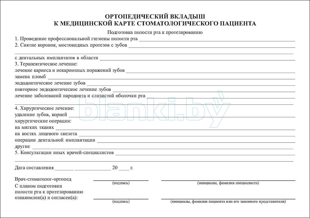 Ортопедический вкладыш к медицинской карте стоматологического пациента