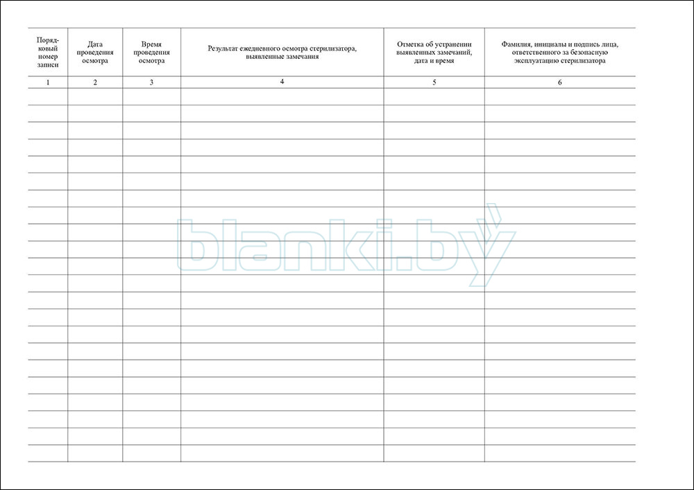 Для каждого стерилизатора должен вестись отдельный журнал ежесменных осмотров и контроля технического состояния стерилизатора.