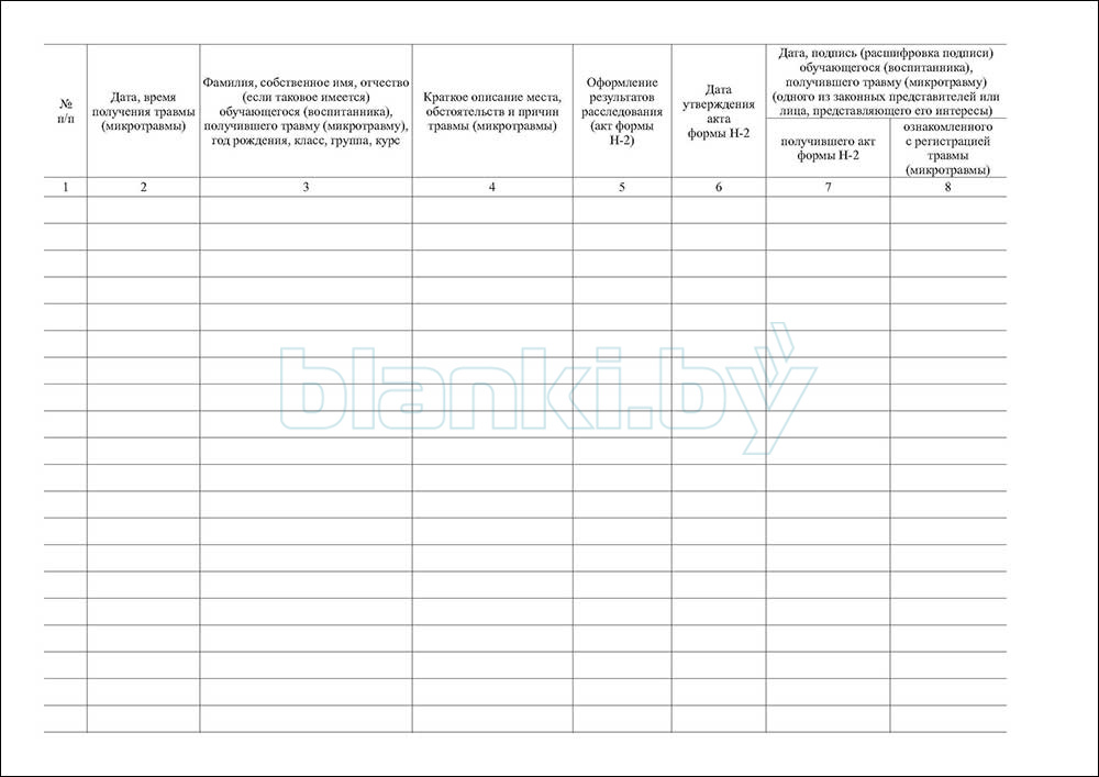 - Журнал регистрации травм (микротравм) (учреждения образования).
