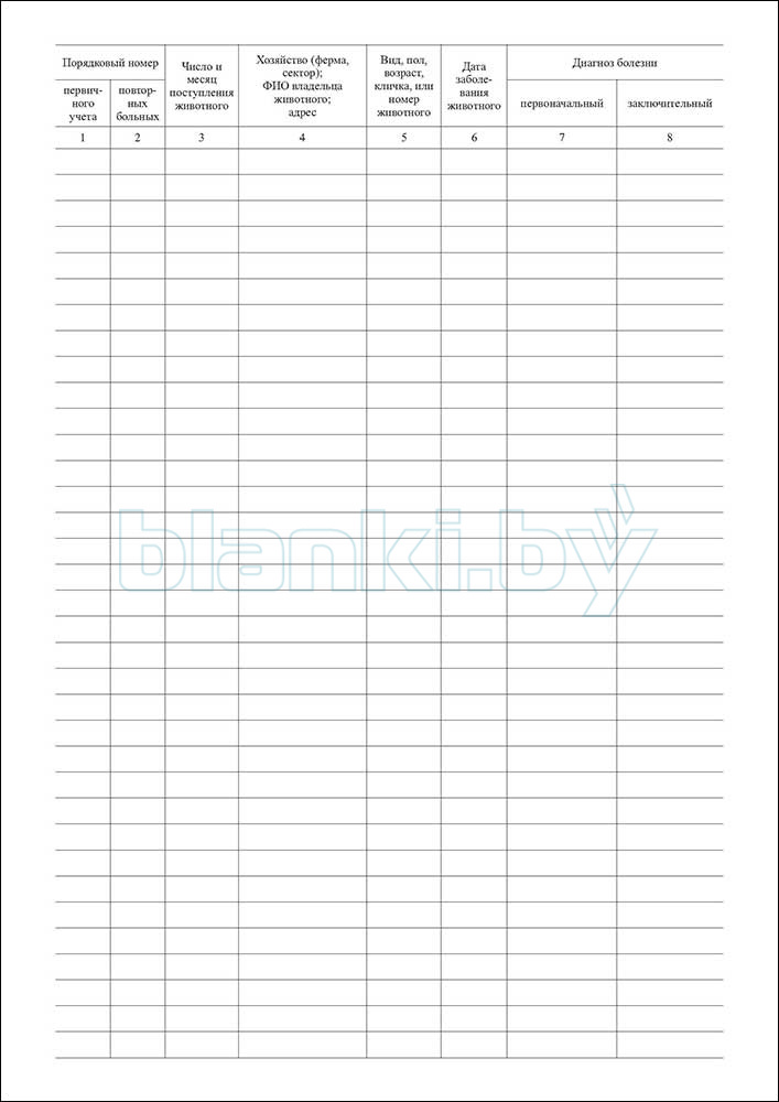 Журнал для регистрации больных животных Форма № 1-вет, сельхозучёт