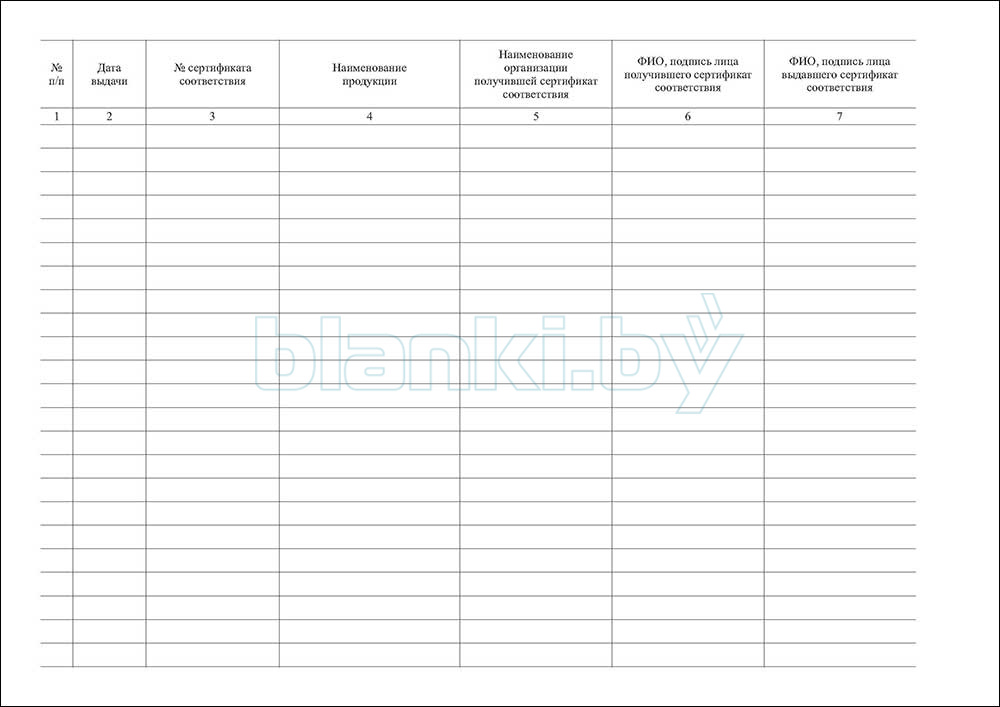 В Журнале заполняется 7 граф, в которые вносится информация о дате выдачи сертификата, его номере, о продукции (наименовании), названии организации, получившей сертификат, ставятся ФИО и подписи лиц, получивших и выдавших сертификат соответствия.
